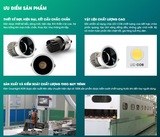 • Sử dụng Chip LED chất lượng cao, đạt độ tin cậy cao