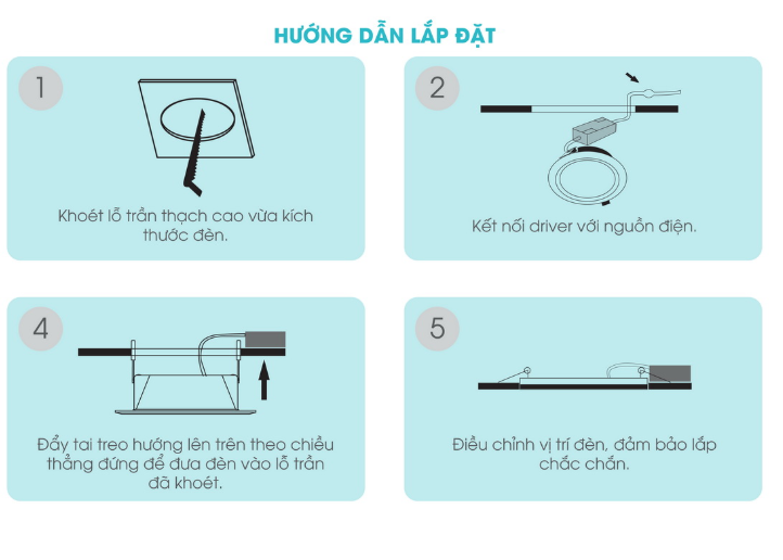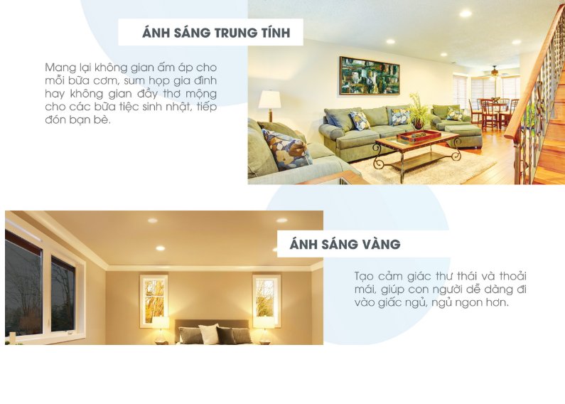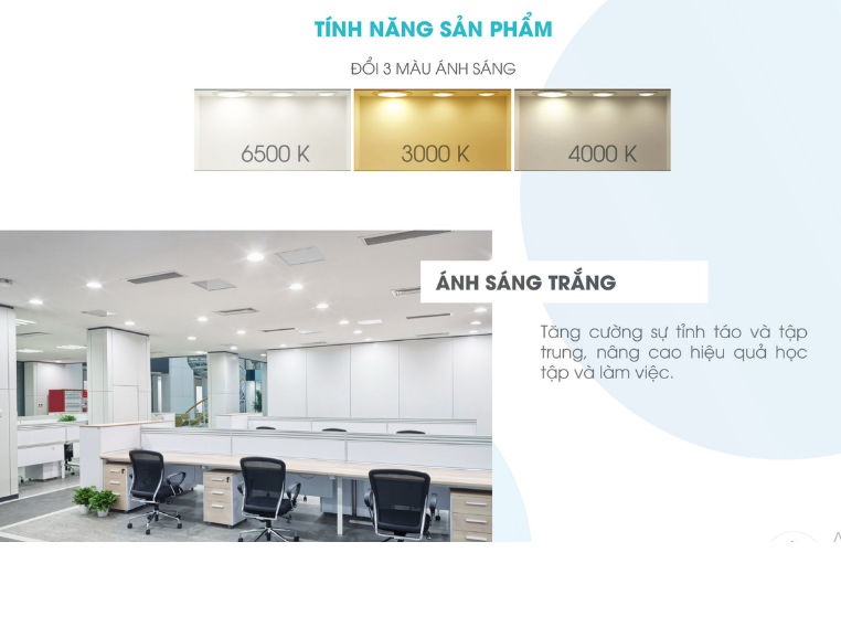 • Để đổi màu ánh sáng: Tắt đèn, sau thời gian (1 – 3) giây rồi bật lại. Thứ tự đổi 3 màu ánh sáng 6500K – 3000K – 4000K