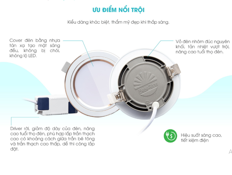 • Vỏ đèn nhôm đúc nguyên khối, tản nhiệt vượt trội.