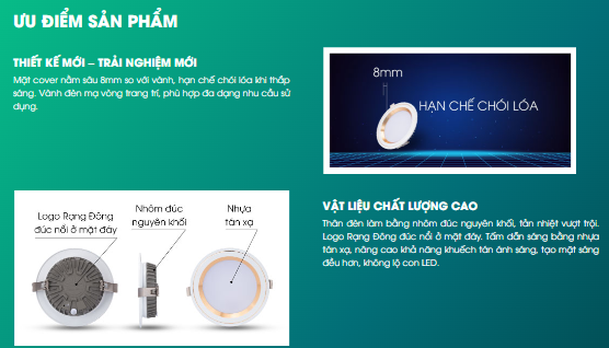 • Sử dụng Chip LED Hàn Quốc đạt độ tin cậy cao.