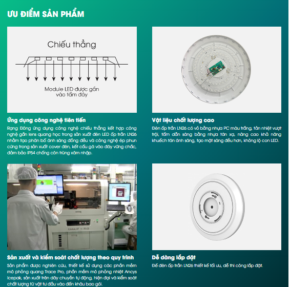 • Chất lượng ánh sáng cao (CRI=80), tăng khả năng nhận diện màu sắc của vật.