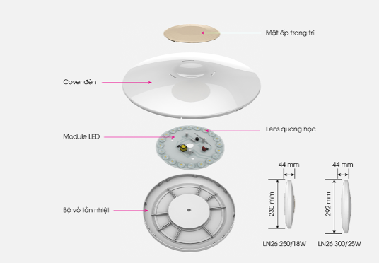 Đèn LED ốp trần đổi màu LN26 ĐM
