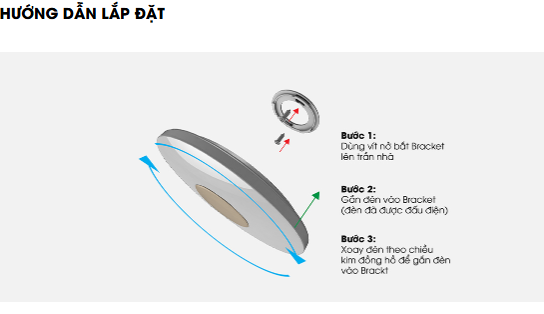 • Để đổi màu ánh sáng: Tắt đèn, sau thời gian (1-3) giây rồi bật lại. Thứ tự đổi 3 màu ánh sáng 6500K – 3000K – 4000K