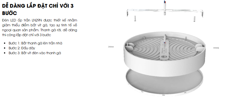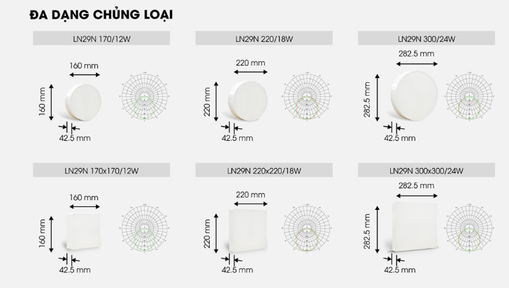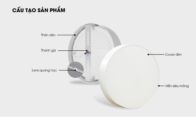 • Cover đèn bằng nhựa PC chất lượng cao, tạo mặt sáng đều, không bị chói, không lộ con LED.