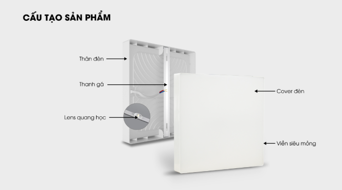 • Cover đèn bằng nhựa PC chất lượng cao, tạo mặt sáng đều, không bị chói, không lộ con LED.