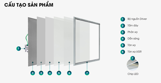 • Ứng dụng công nghệ dẫn sáng trên tấm thủy tinh quang học biến nguồn sáng điểm LED thành nguồn sáng phẳng, phân bố ánh sáng đều trên bề mặt đèn, hạn chế chói lóa.
